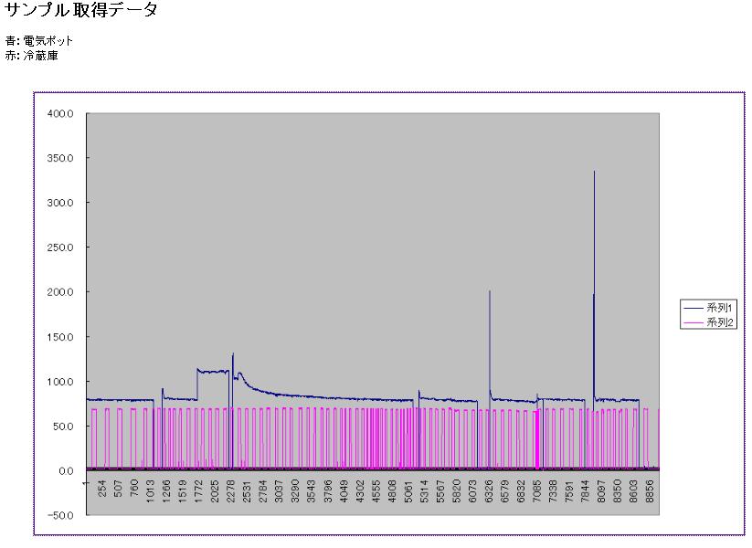データサンプル(縦:電力[W]/横:時間[秒×0.1])